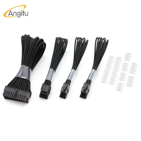Angitu özelleştirilmiş 4mm PET kollu 90 derece ATX ATX MB, 1X4 + 4Pin, 2x6 + 2Pin PSU güç uzatma kablosu kiti