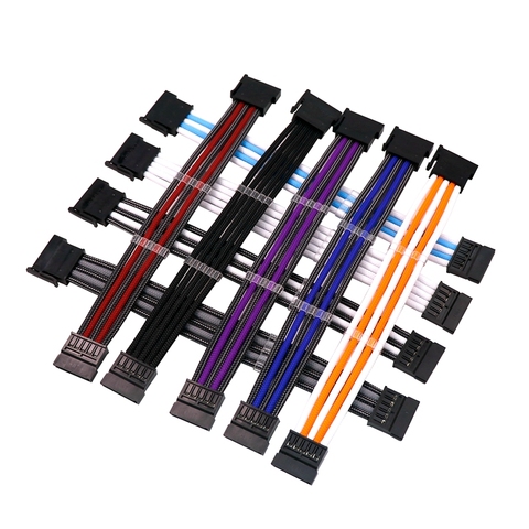 Angitu Premium Single Sleeved 18awg Crimped SATA Macho a Hembra 15pin Sata 2x3x4x5xFemale Cable de extensión de alimentación